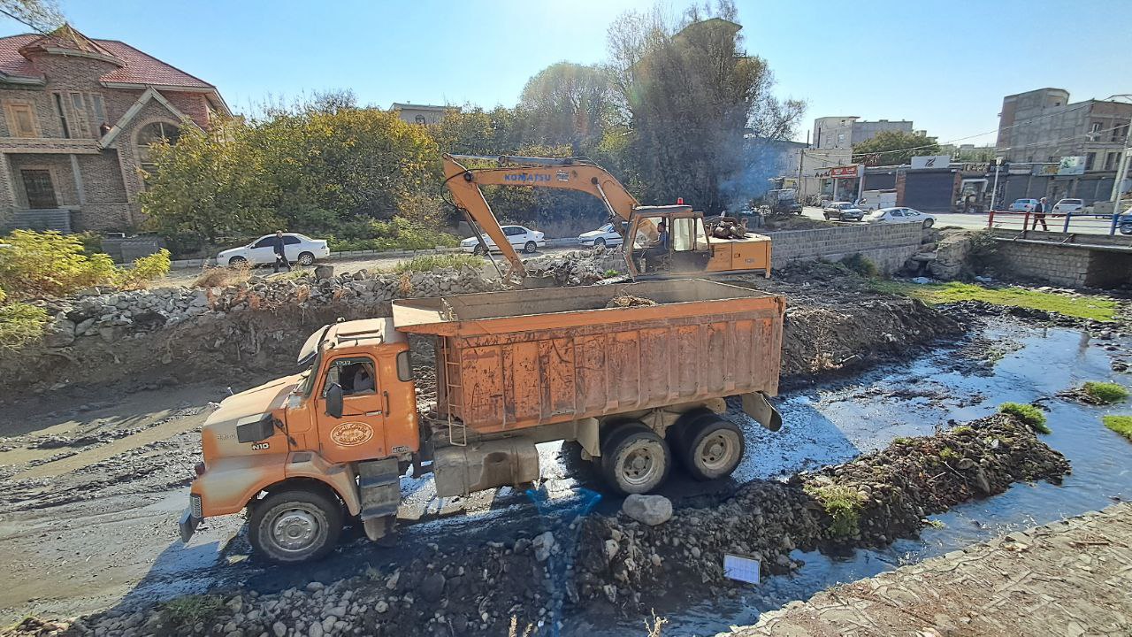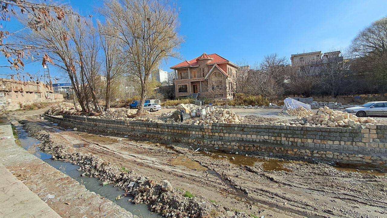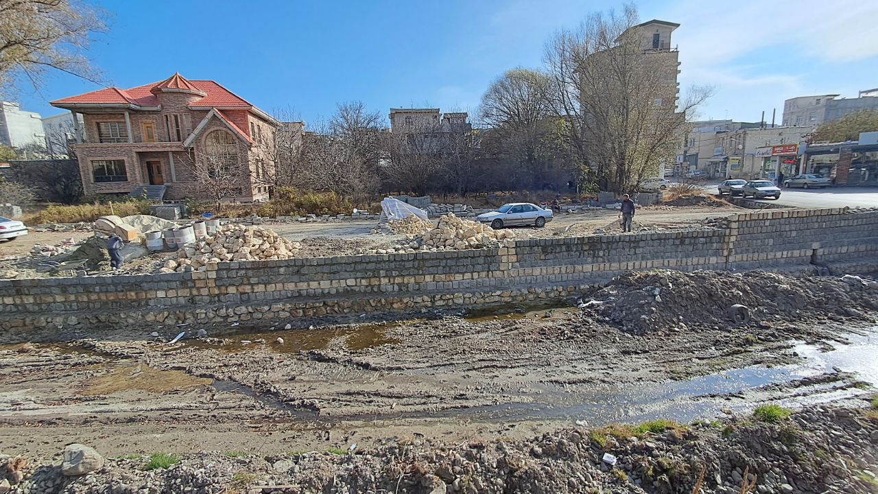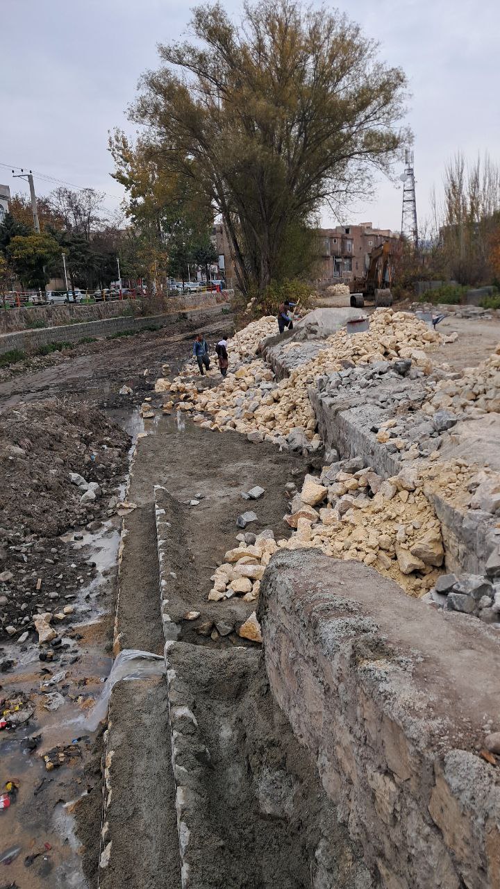 عملیات اجرای دیوار حایل رودخانه نمین چای